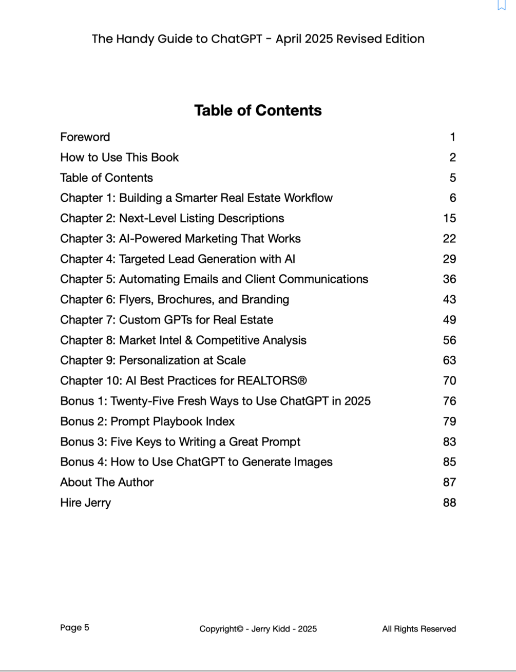 This updated edition of The Handy Guide to ChatGPT is your essential playbook for using AI to market smarter, save time, and grow your real estate business in a rapidly changing world. Whether you’re a solo agent, a team leader, or a tech-curious veteran, this guide shows you exactly how to use ChatGPT in your daily workflow.
